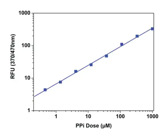 | Principle【原理】 | The pyrophosphate concentration of a sample is determined by the use of a unique fluorogenic pyrophosphate sensor in which the presence of pyrophosphate results in the production of a fluorescent product (λex =370/λem = 470 nm) proportional to the pyrophosphate present. This assay is simpler and more robust than traditional enzyme-based methods and is ideal for screening enzyme activity or enzyme inhibitors. |
